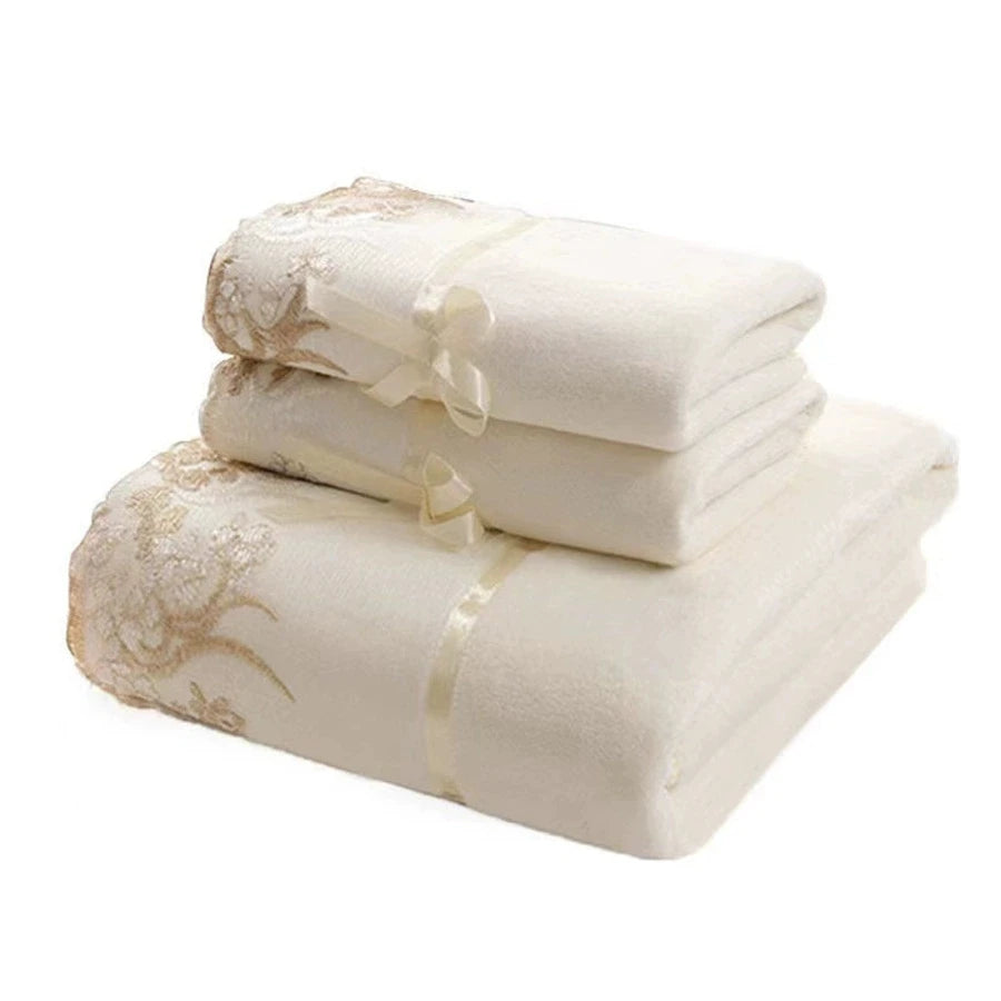 Serviette de bain avec dentelle – L'élégance raffinée au cœur de votre salle de bain